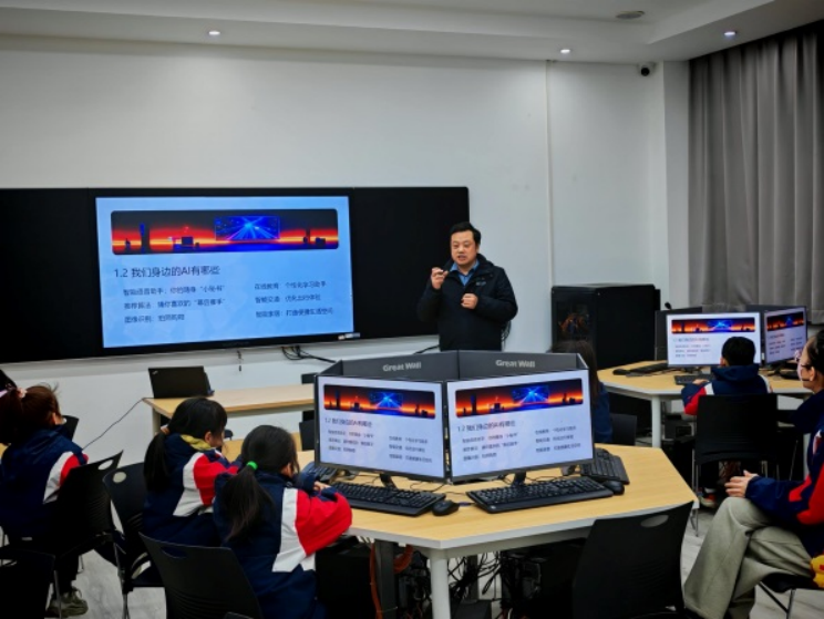 随后,同学们走进电信学院实训室,亲身感受电子信息世界,触摸人工智能未来。刘书强老师带领同学们体验人工智能的奇妙应用,详细介绍了什么是人工智能、生活中应用AI的场景以及人工智能生成视频的原理。同学们与AI进行对话,亲眼看到AI根据文字描述生成视频,更了解了视频生成背后的原理,感受到智能技术的创造力和实用性,也对“机器如何学习”产生了浓厚兴趣。